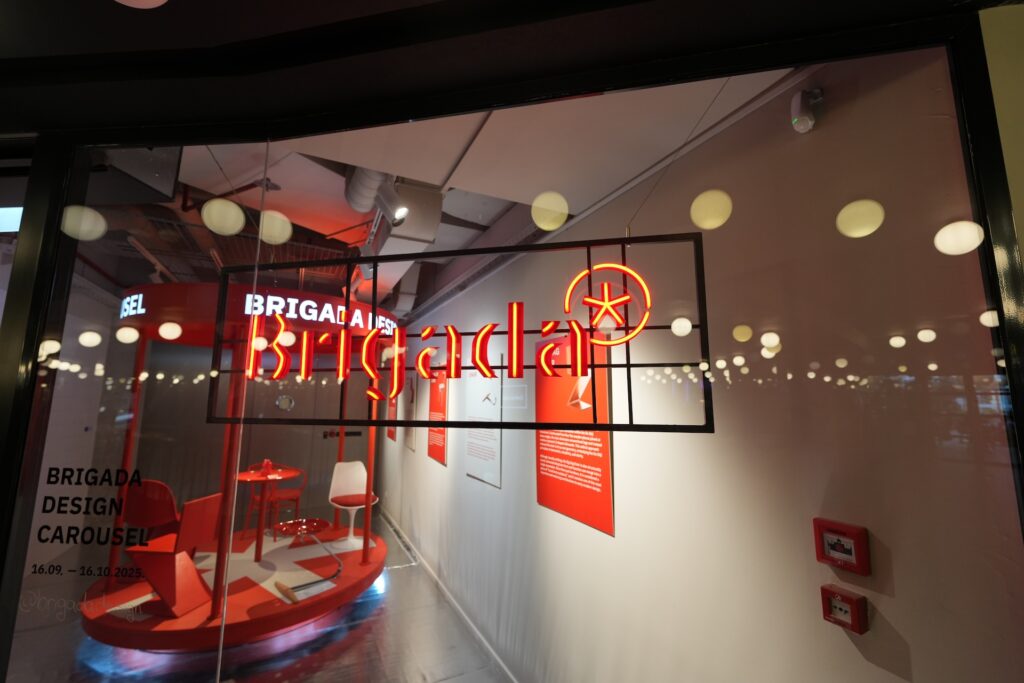 Na Zagreb Design Weeku 2025. Brigada je ondje predstavila izložbu “Dizajn Karusel”, analognu, interaktivnu instalaciju koja vodi posjetitelje kroz povijest dizajna.