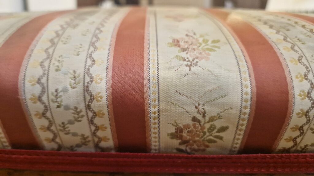 Presvlake i tekstil bidermajerskog interijera odišu svježinom i jednostavnošću. U uporabi su svijetle tkanine pastelnih tonova, najčešće prugaste ili ukrašene sitnim cvjetnim motivima i girlandama. One stvaraju atmosferu lakoće i profinjenosti, a istovremeno unose vedrinu u prostor. Zavjese, stolnjaci i tapete izrađuju se od prirodnih materijala, često ručno tkanih, što prostoru daje autentičnost i osobni pečat. Svaki element ima svrhu – da pruži udobnost i osjećaj doma.