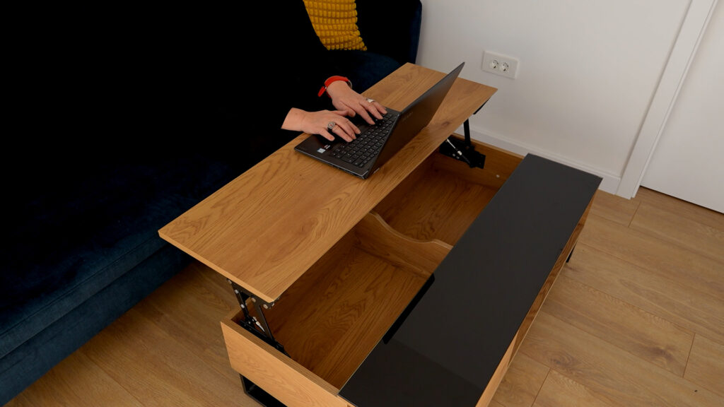 Klupski stol ima više funkcija. Jedan dio služi kao radni stol, drugi za društvene igre, treći kao klasični stolić, a četvrti za opuštanje uz televizor. Jedan komad namještaja tako odgovara na više svakodnevnih potreba.