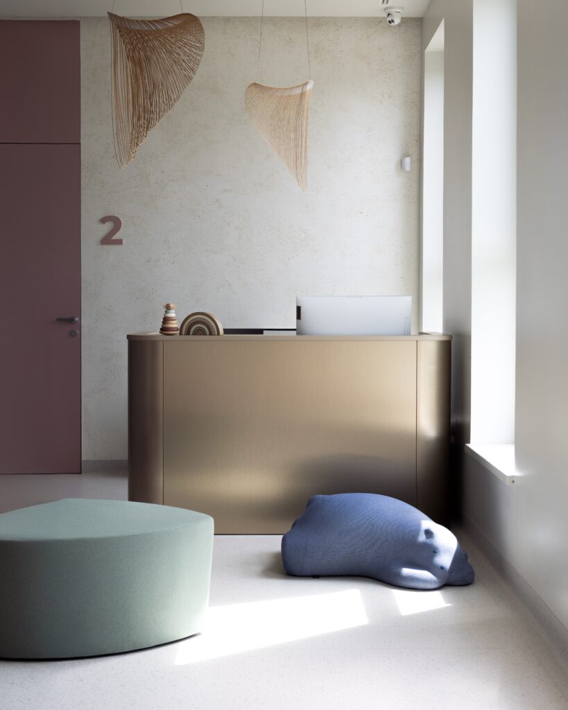 „Htjeli smo postići nenametljivost. Bili smo definirani već postojećom podnom oblogom koja je bila drvena i oblogama pločica u kupaonama koje su bile sivkaste, pa smo nijansiranje usmjerili prema tome — bež nijanse i drvene nijanse koje se ne kose s postojećim oblogama.”