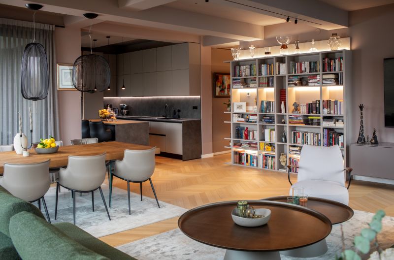 Boravak, kuhinja i blagovaonica oblikovani su kao jedinstvena cjelina, dok su spavaće sobe smještene u odvojenom, mirnijem dijelu stana.