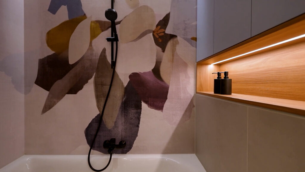 Umjesto geometrije fuga i ponavljanja formata, zidovi mogu izgledati poput velikog platna s teksturom, uzorkom ili dekorativnim motivima. Takav pristup posebno se sviđa onima koji žele topliji interijer i dojam hotelske ili wellness atmosfere u vlastitom domu.