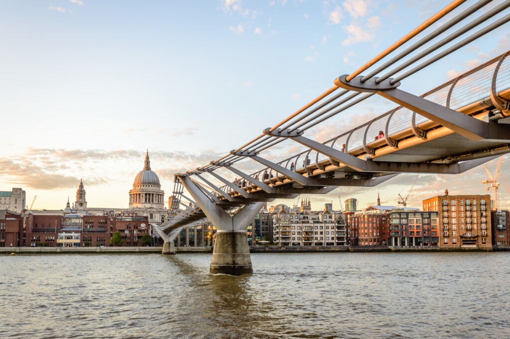 Millennium Bridge, pješački most preko Temze koji povezuje St Paul’s Cathedral i Tate Modern, nastao je kroz suradnju Foster + Partnersa, inženjera Ove Arupa i kipara Anthonyja Cara. Dizajniran kao lagana, elegantna „oštrica svjetla“, most naglašava minimalizam i prozračnost, ne zaklanjajući panoramu grada. Iako je zbog početnog kolebanja stekao nadimak „Wobbly Bridge“, nakon tehničkih dorada postao je jedan od najprepoznatljivijih londonskih mostova i još jedan primjer Fosterova karakterističnog spoja estetike i inženjerske inovacije.