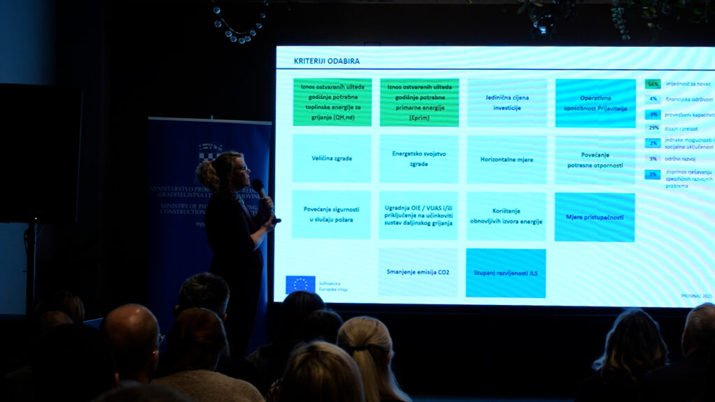 Kako je istaknula Irena Križ Šelendić iz Ministarstva prostornoga uređenja, graditeljstva i državne imovine, cilj dijaloga bio je okupiti sve relevantne dionike – od akademske zajednice i energetskih certifikatora do projektanata, izvođača, proizvođača građevinskih materijala i predstavnika lokalne samouprave – kako bi se zajednički raspravili prvi rezultati analiza i definirali daljnji koraci provedbe plana.