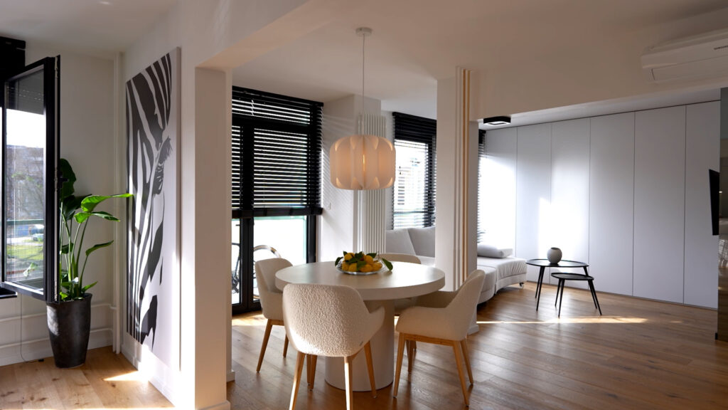 Ovaj stan pokazuje da se potencijal prostora često krije tamo gdje ga najmanje očekujemo. Ostava usred dnevnog boravka na prvu zvuči kao kompromis — ali u rukama dobre arhitektice postala je prednost koja je unaprijedila cijeli stan.