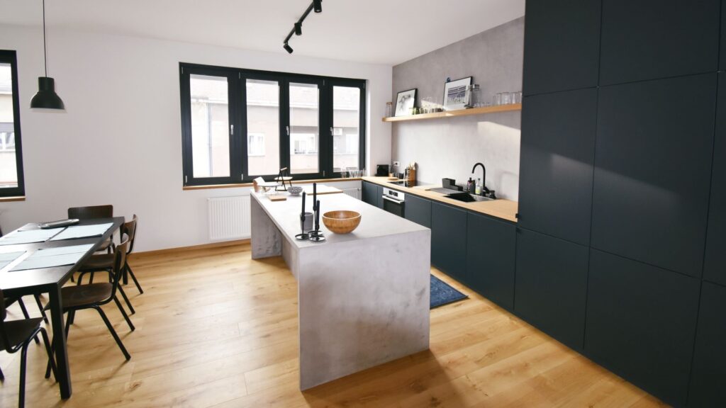 Veliki stol, upečatljiva rasvjeta ili neobične stolice dodatno naglašavaju stil i pretvaraju kuhinju u prostor koji nije samo funkcionalan nego i estetski snažan.