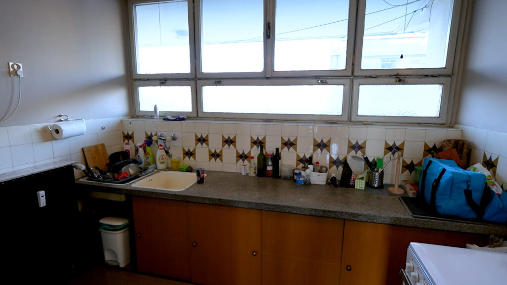 Posebna pažnja posvećena je detaljima – od retro kuhinje s originalnim terrazzo pultom i umivaonikom, do harmonika-vrata koja omogućuju da se jedna prostorija u trenutku pretvori u zasebnu garsonijeru. Takva fleksibilnost čini ovaj filmski stan gotovo scenografskim studijem unutar stvarne arhitekture.