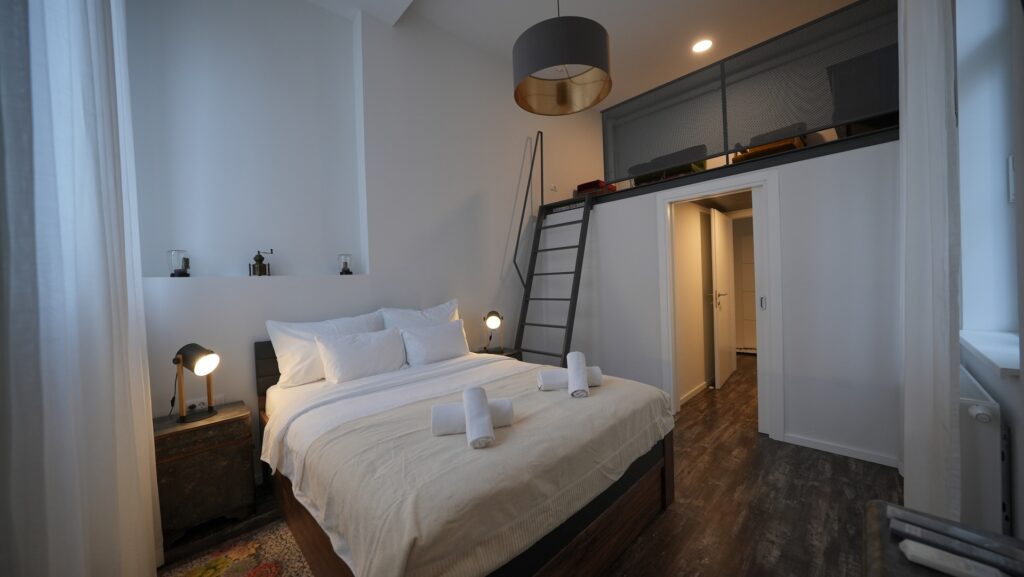 Ključna ideja bila je maksimalno iskoristiti visinu stropa. Umjesto klasične adaptacije, odlučeno je da se u stan uvedu galerije – ali ne masivne, zatvorene konstrukcije, već prozračne i otvorene.
